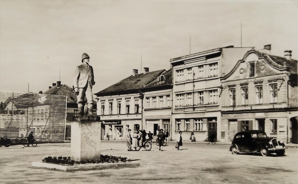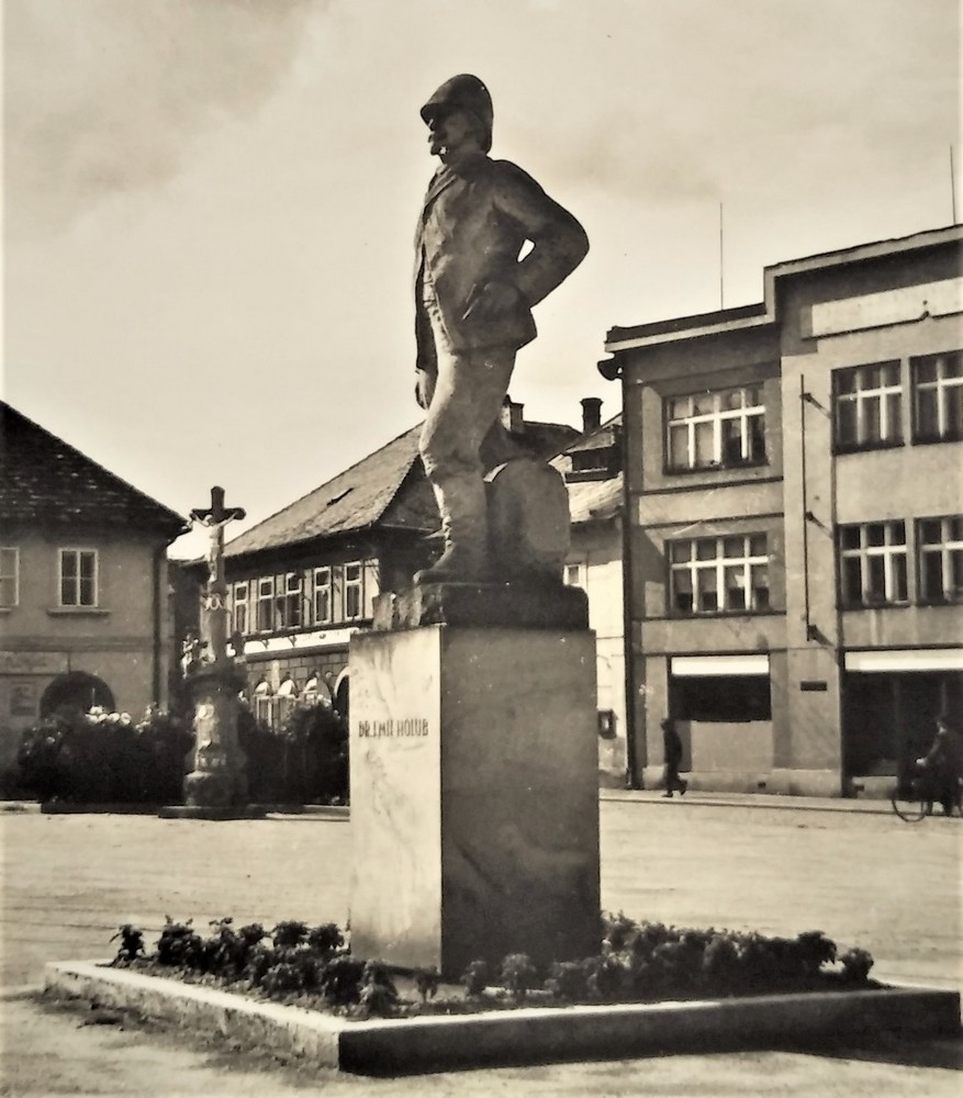 Sochu Dr. Emila Holuba věnoval městu Kruh rodáků a přátel města Holic v Praze. Dílo akademického sochaře Jindřicha Soukupa, akademického architekta Karla Dudycha a sochaře Otakara Velínského původně zdobilo holické náměstí. Slavnostní odhalení se uskutečnilo za osobní účasti cestovatelovy vdovy Růženy Holubové 16. října 1949. Herec pražského Národního divadla Eduard Kohout přednesl báseň Jaroslava Seiferta Emil Holub, věnovanou právě nejslavnějšímu rodákovi města. Od roku 1956 však socha stojí před budovou České pošty na křižovatce ulic Hradecká a Holubova.