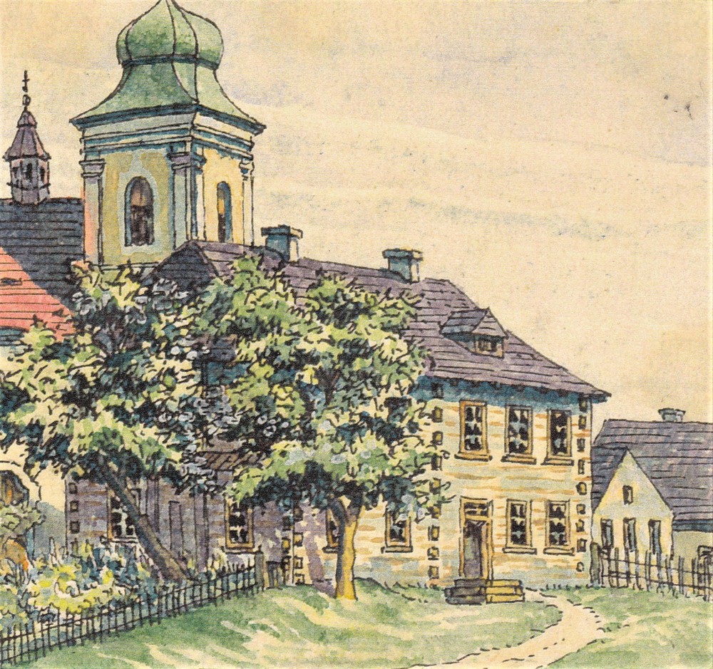 Dnes je na budovu fary napojena zeď, ohraničující až do poloviny 19. století hřbitov, který se rozkládal právě okolo farního kostela. Na něj upomínají i zbytky několika náhrobků. Před farou stojí socha Panny Marie.
